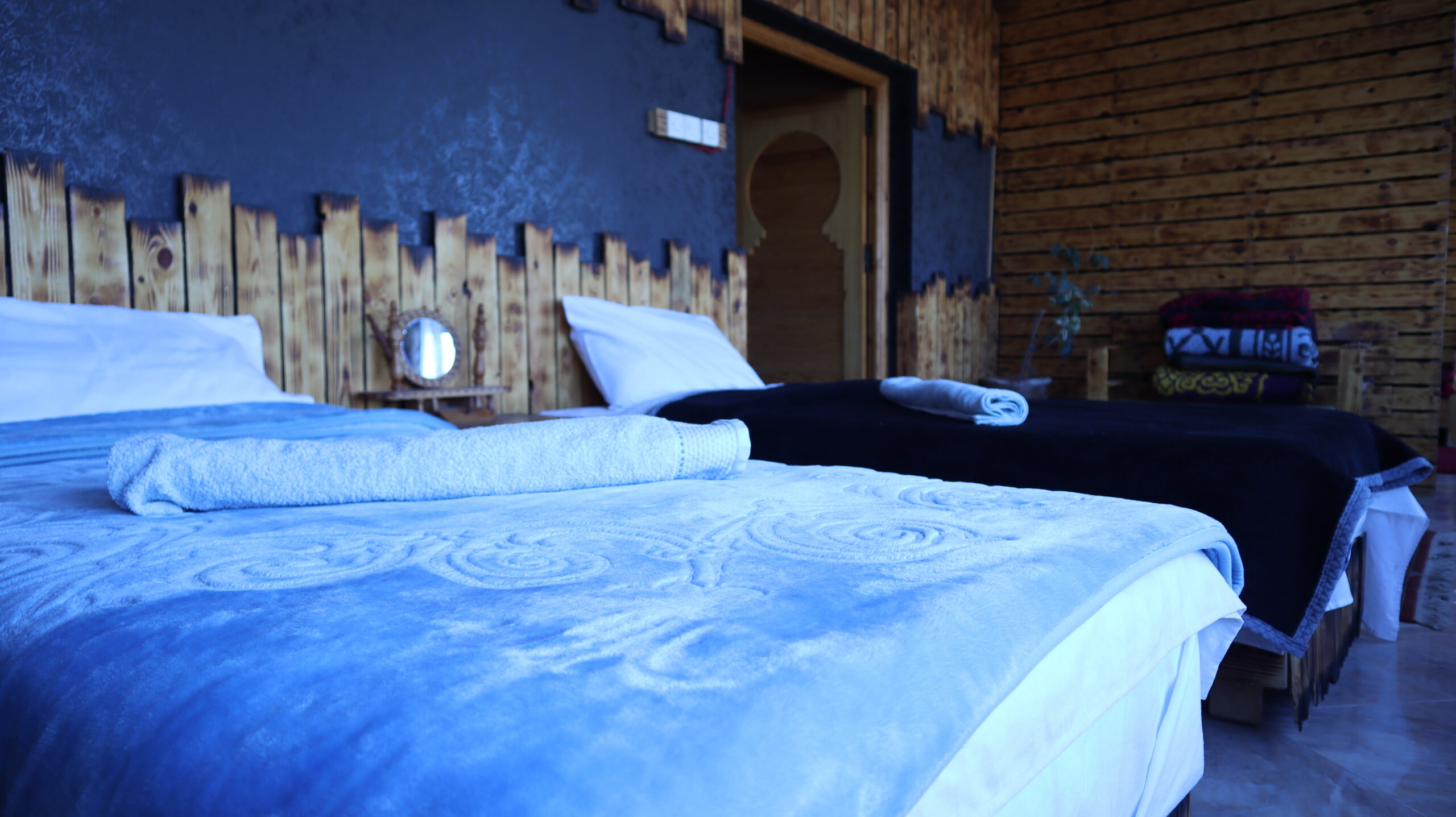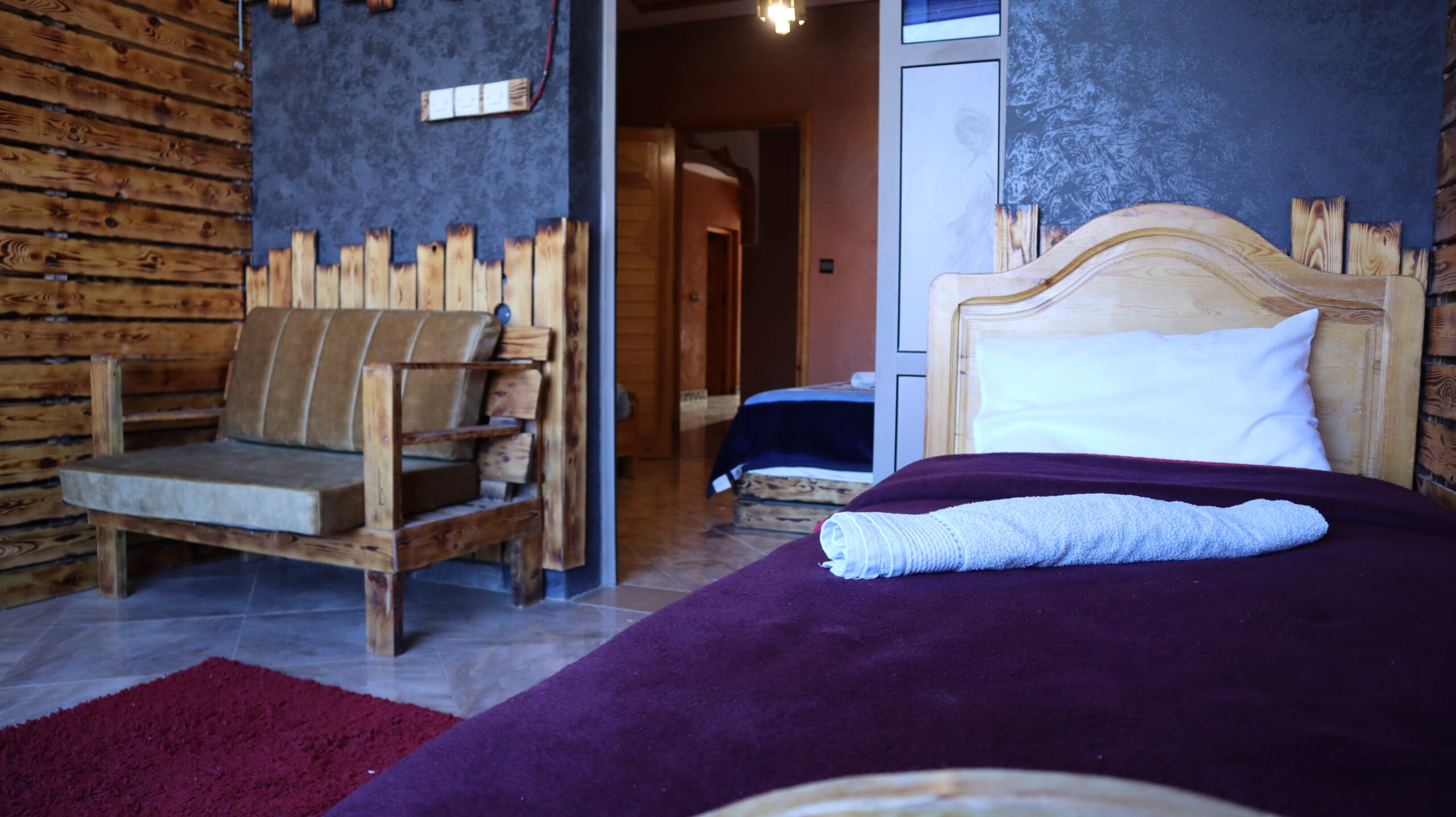 Designed to feel like a home away from home, the apartment overlooks the tranquil hotel garden, providing a serene atmosphere for rest and rejuvenation. With modern amenities like air conditioning and plenty of space to gather or retreat, the apartment is perfect for longer stays or those who value comfort and practicality during their visit to the Tinghir region.